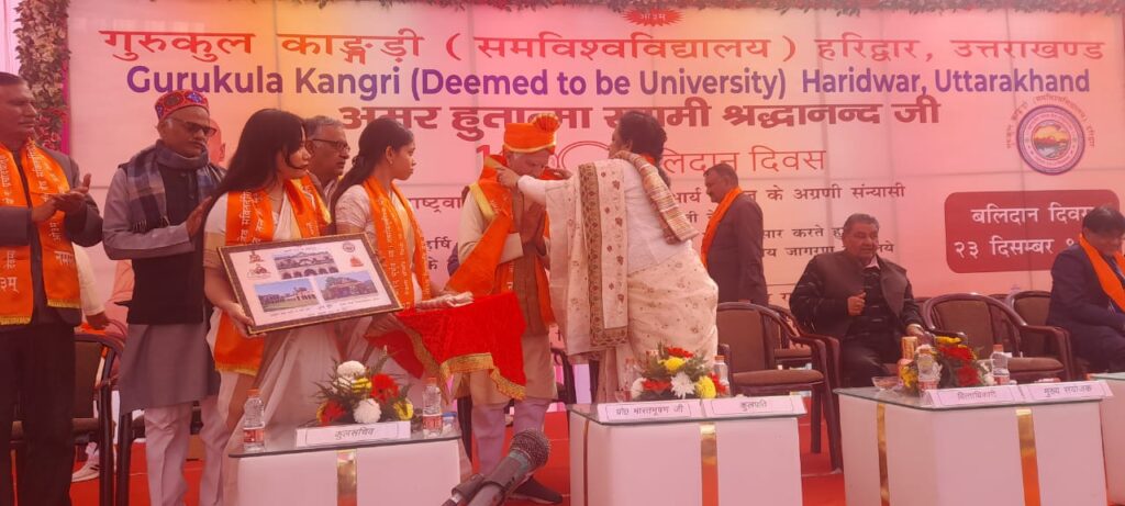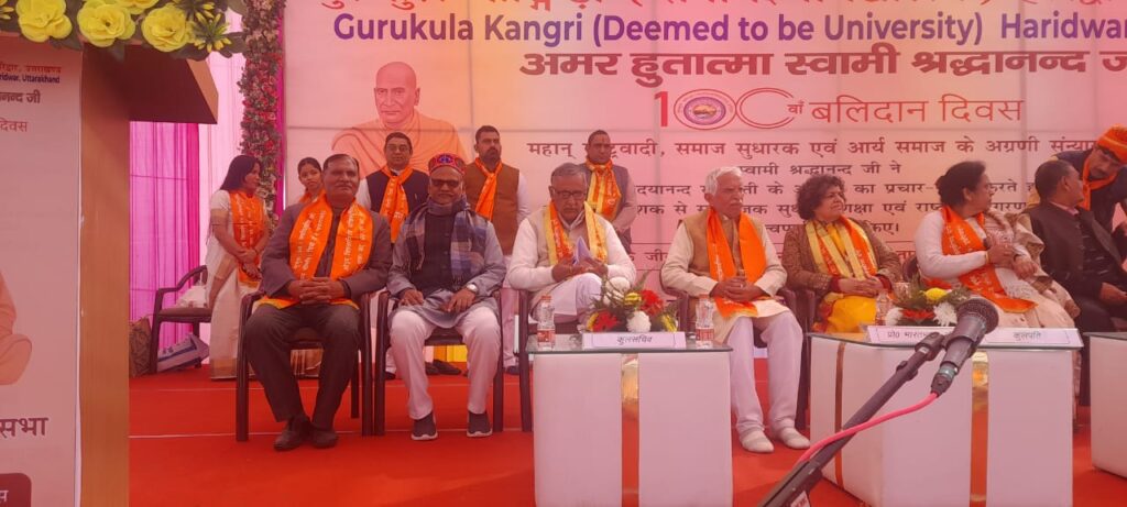 हरिद्वार।अमर हुतात्मा स्वामी श्रद्धानंद जी के 100वें बलिदान दिवस के पावन अवसर पर गुरुकुल कांगड़ी समविश्वविद्यालय के दयानंद स्टेडियम में वैदिक परंपरा, श्रद्धा और राष्ट्रीय चेतना के साथ 51 कुंडलीय महायज्ञ का भव्य एवं गरिमामय आयोजन किया गया। महायज्ञ के ब्रह्मा प्रो. मनुदेव बंधु रहे, जबकि सहयोगी वाचक के रूप में डॉ. दीनदयाल एवं डॉ. वेदव्रत ने वैदिक मंत्रोच्चारण के साथ विधिपूर्वक यज्ञ सम्पन्न कराया।